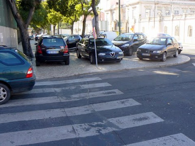 Não ao estacionamento nos passeios! Já chega de incompetência das autoridades que durante anos a fio têm fechado os olhos à maior vergonha da cidade de Lisboa que é o estacionamento ilegal e abusivo de veículos que barra a passagem dos peões que têm o DIREITO de circular à vontade nos passeios. Basta ir à zona de Benfica, como à Av. Gomes Pereira ou R. da Venezuela, para ver o que se passa à vista de todos. Porquer não a colocação de pilaretes nestas zonas problemáticas?