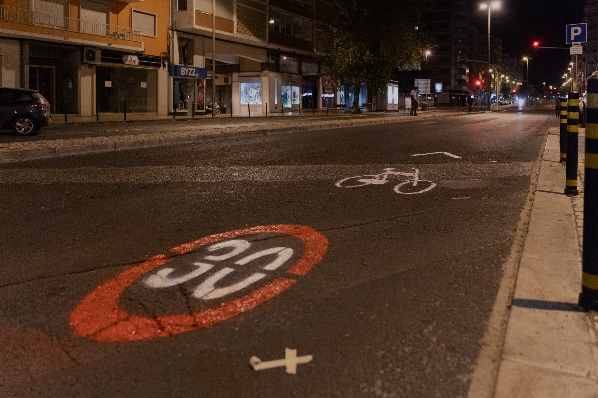 Mais uma ciclovia pintada por ativistas em Lisboa