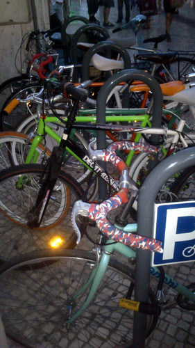 Nota habitual: não sendo um blogue pró-bicicletas, mas sim pró-cidades mais humanas, a promoção activa da bicicleta não é a primeira das nossas prioridades (como é a melhoria dos transportes públicos, planeamento a pensar nas pessoas e não nos automóveis, redução do estacionamento à superfície e das velocidades, etc). E existem coisas bem mais simples que parecem ter um impacto igualmente favorável para a bicicleta: limitar a velocidade a 50km/h nas principais vias da cidade, 30km/h nas secundárias e piso decente.